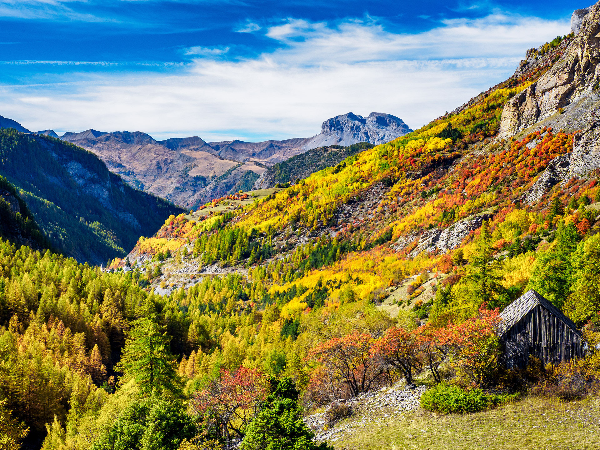 Dans les Alpes du Sud l’automne en montagne prend la place de l’été, les marmottes ont déjà refermé leurs terriers, mais c’est la période que tous les photographes de paysages de montagne attendent avec impatience pour immortaliser sur la pellicule les couleurs incroyables que nous offrent les forêts de mélèzes.
